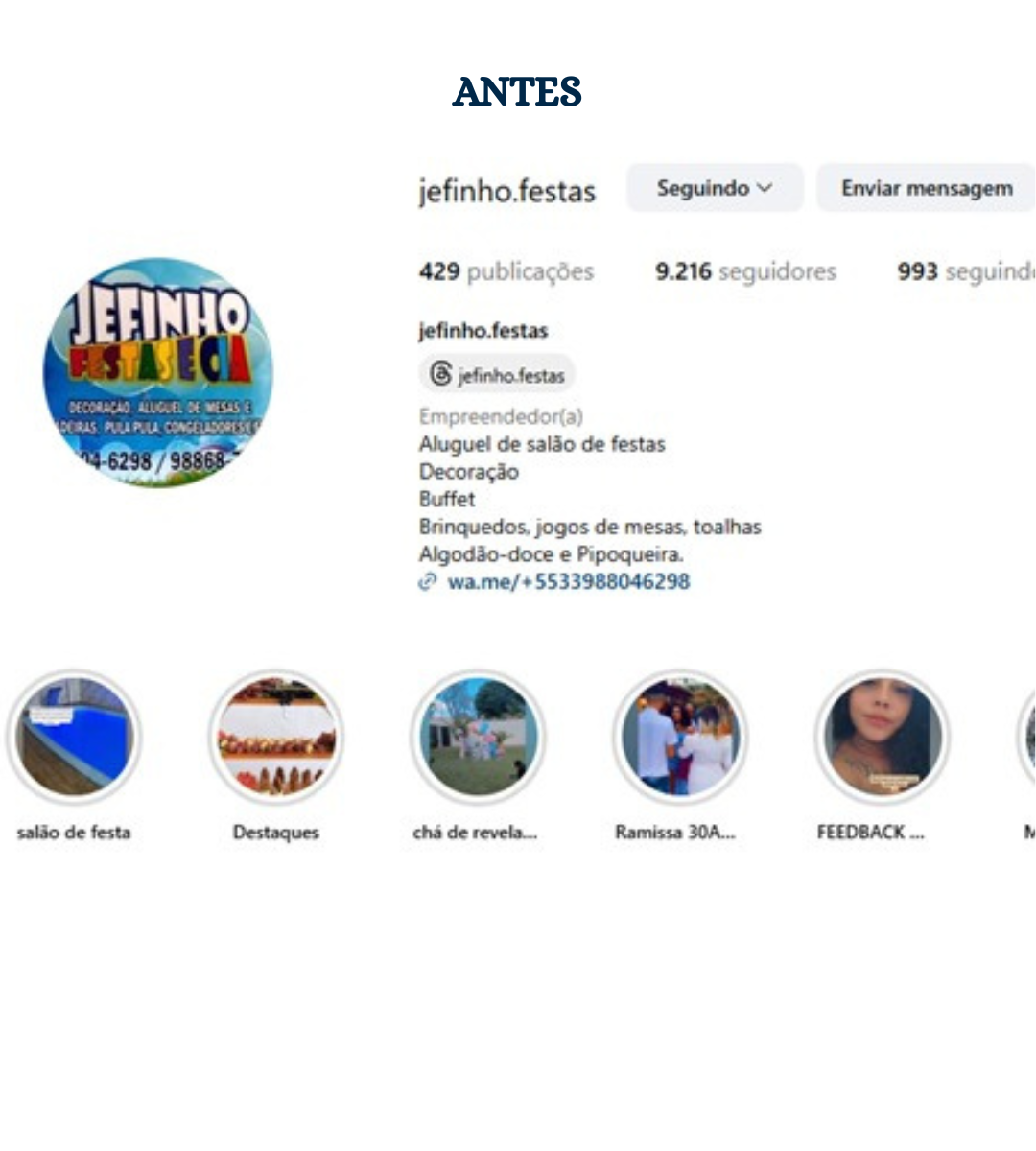 Seu Instagram é a vitrine do seu negócio. Estruturamos biografia, destaques, capas personalizadas e a grade do perfil para transmitir profissionalismo e fortalecer sua marca.