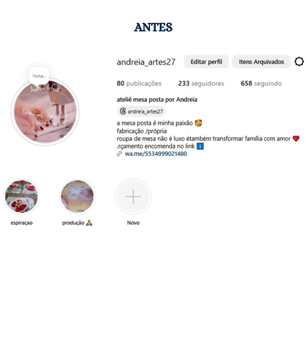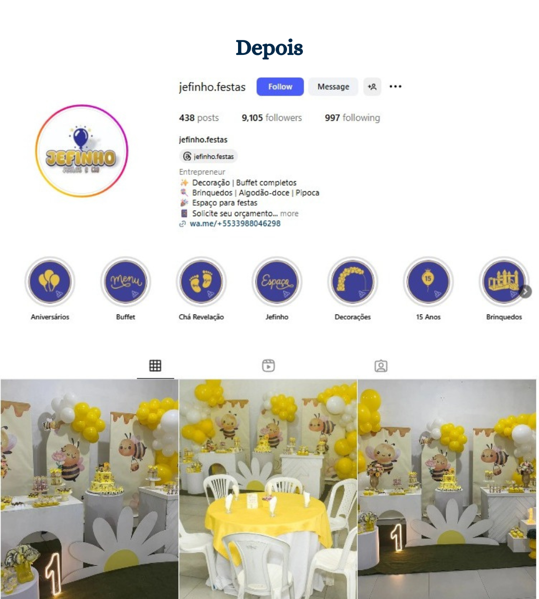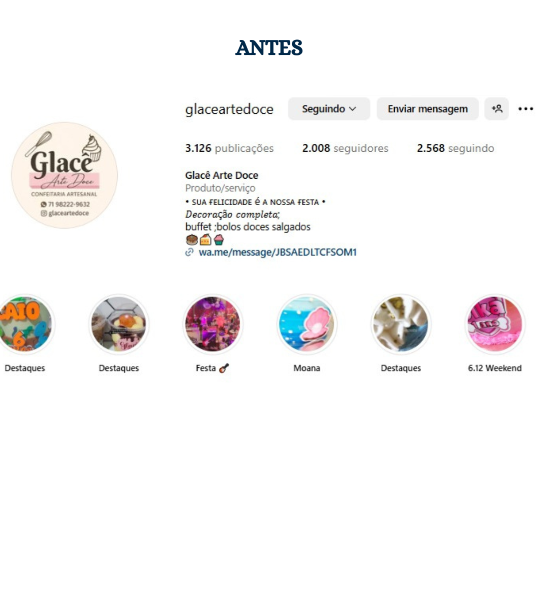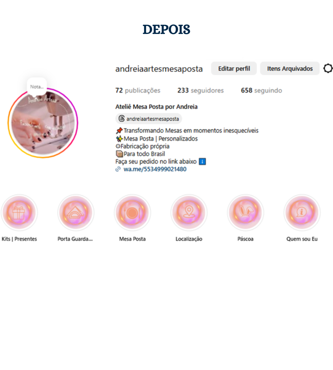 Seu perfil alinhado ao posicionamento da marca. Organização visual, identidade e estrutura estratégica para transmitir profissionalismo e valor no Instagram.